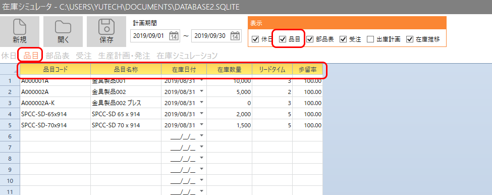 ・品目コード・・・品目ごとに付番されたコード